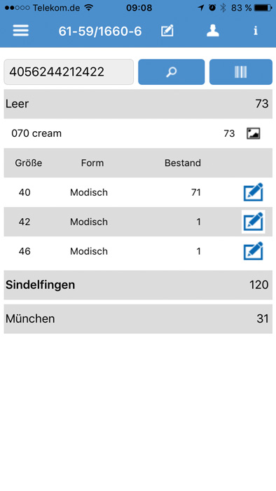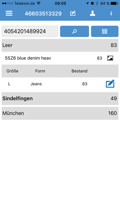 Die Bestands-APP ist der mobile Sales-Assistant für den Mitarbeiter auf der Verkaufsfläche. Mit der APP können Sie nicht nur schnell, einfach und mobil die eigenen Bestände einsehen, sondern auch Umlagerungen bequem vom Handy auslösen. Über die Funktion "REGALVERLÄNGERUNG" können Sie zudem auf die Bestände der Lieferanten zugreifen und Kundenbestellungen direkt absetzen.